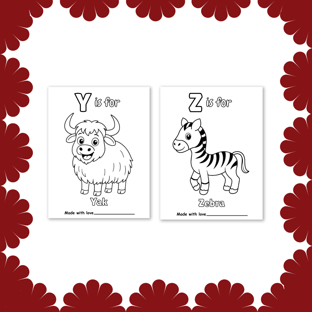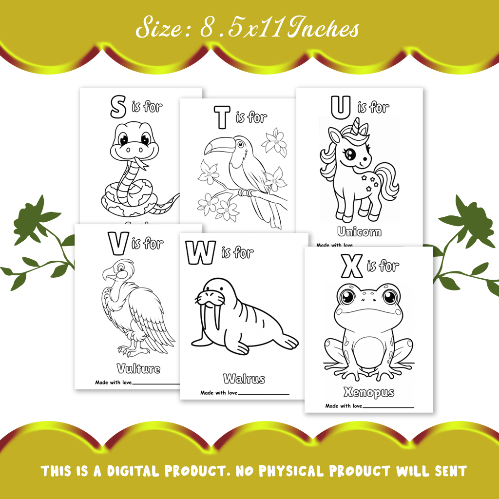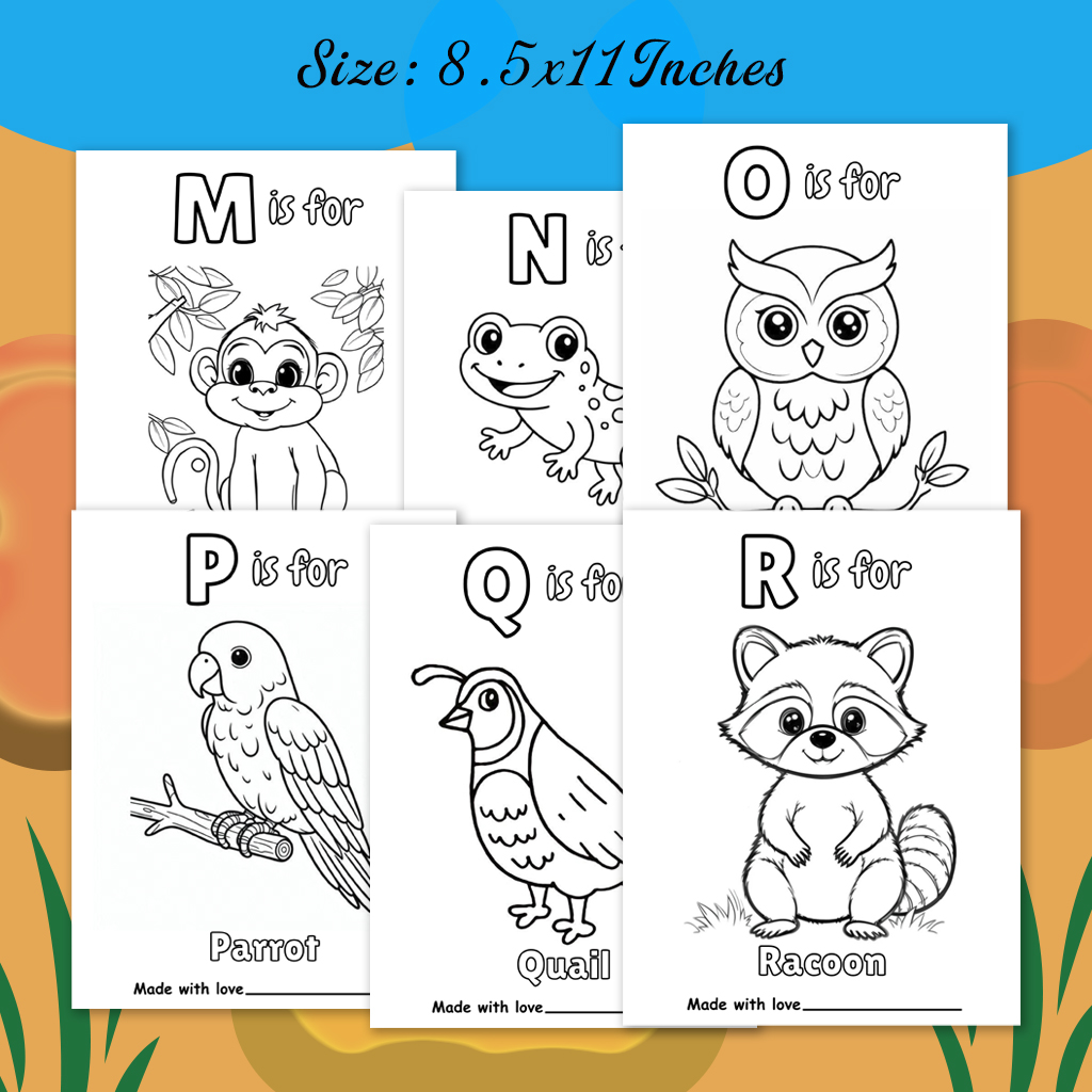 26 Adorable Alphabet Pages: Each letter of the alphabet is illustrated with charming, baby-friendly designs—think cute animals and birds. From “A is for Alligator” to “Z is for Zebra,” every page invites creativity and imagination.